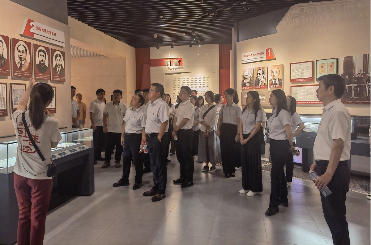 隨后,全體同志前往中共五大舊址。1927年,中共五大在此首次明確“政治紀律”概念,并選舉產生黨的首個中央紀律檢查監督機構,為黨的紀律建設奠定重要基礎。舊址內復原的會議場景、陳列的歷史遺物,讓黨員們沉浸式感悟先輩們在艱難時局中堅守紀律、革新圖強的堅定決心,深刻領會紀律建設的歷史必然性。